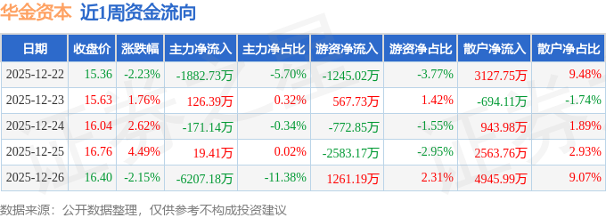 资金流向数据方面,本周华金资本主力资金合计净流出8115.24万元,游资资金合计净流出2772.12万元,散户资金合计净流入1.09亿元。本周资金流向一览见下表: